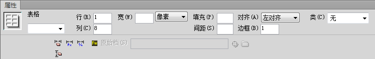 4.显示表格属性:选择整个表格,单击标签选择器下面的“属性”:格式 ID 类 链接 字体加粗 标题 目标