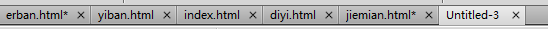 用于显示当前打开或新建的网页文件,新建文件名:untitled-1,untiled-2,untiled-3.......,文件名带星号是修改后没有保存以提醒用户保存.多个文件的快速操作利用文件菜单中的"全部保存"或"全部关闭"